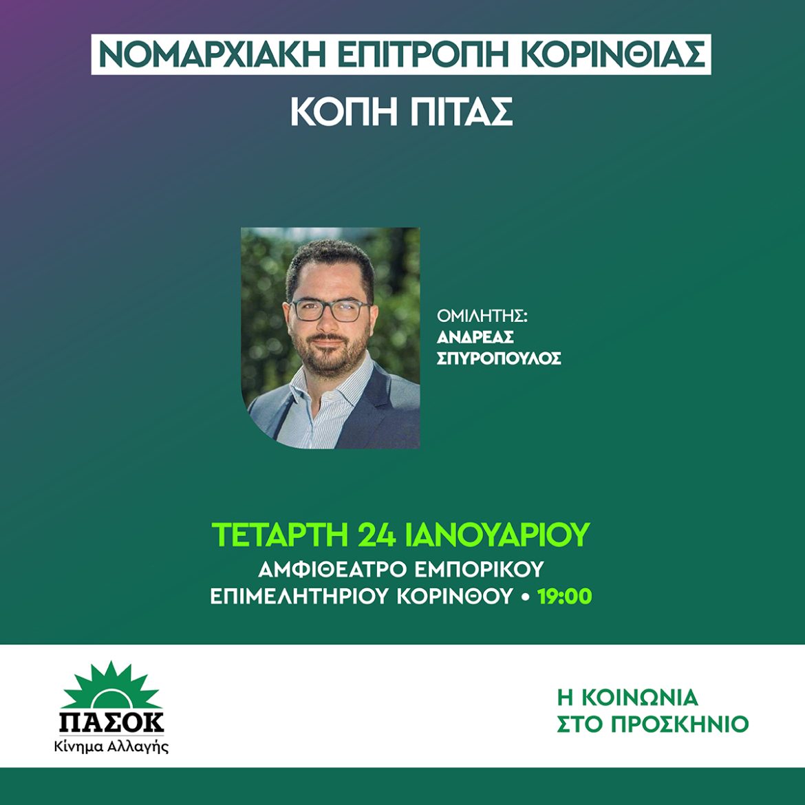 ΚΟΡΙΝΘΙΑΚΑ ΝΕΑ ΠΑΣΟΚ – Κινήμα Αλλαγής.Την Τετάρτη 24/1/2024 στις 19:00 θα πραγματοποιηθεί η κοπή της πρωτοχρονιάτικης πίτας στο Επιμελητήριο Κορινθίας by Κ. Α. 19 Ιανουαρίου, 2024 written by Κ. Α. 19 Ιανουαρίου, 2024 644 Τετάρτη 24/1/2024 στις 19:00 θα πραγματοποιηθεί η κοπή της πρωτοχρονιάτικης πίτας μας στο Επιμελητήριο Κορινθίας (Ερμού 2 Κόρινθος), παρουσία του κ. Ανδρέα Σπυρόπουλου – Γραμματέα της ΚΠΕ ΠΑΣΟΚ – Κινήματος Αλλαγής. Με Εκτίμηση, Ελευθερία Παπαλεκα Υπεύθυνη Επικοινωνίας – Μ.Μ.Ε Ν.Ε ΠΑΣΟΚ – ΚΙΝΑΛ Κορινθίας 0 FacebookTwitterPinterestEmail Κ. Α. previous post Η MNHMH ΤΟΥ ΑΓΙΟΥ ΑΘΑΝΑΣΙΟΥ ΣΤΗΝ ΟΜΩΝΥΜΗ ΓΥΝΑΙΚΕΙΑ ΙΕΡΑ ΜΟΝΗ ΣΤΗΝ ΠΟΥΛΙΤΣΑ ΚΟΡΙΝΘΙΑΣ. next post Έκτακτο Δελτίο Επιδείνωσης του καιρου απο την EMY