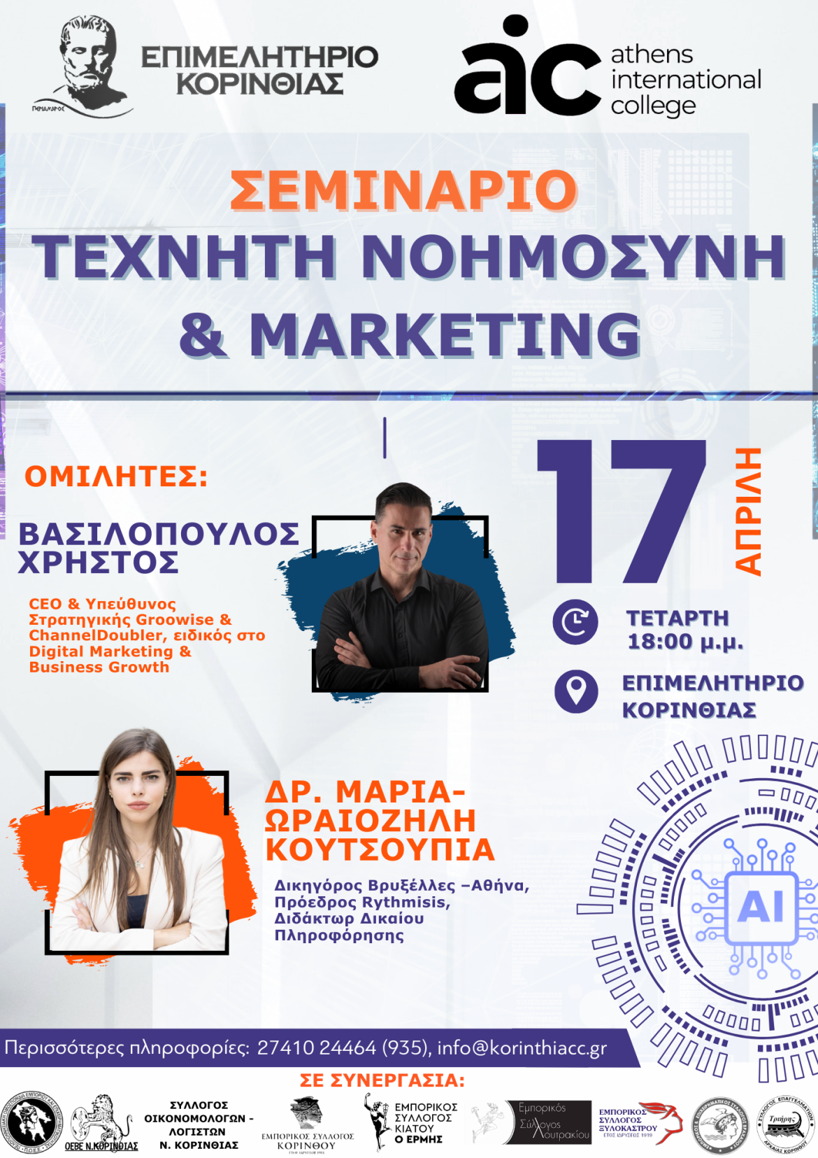 ΚΟΡΙΝΘΙΑΚΑ ΝΕΑ Σεμινάριο για την Τεχνητή Νοημοσύνη θα πραγματοποιηθεί στις 17 Απριλίου στις 18:00 στο Επιμελητήριο Κορινθίας by Κ. Α. 10 Απριλίου, 2024 written by Κ. Α. 10 Απριλίου, 2024 310 0 FacebookTwitterPinterestEmail Κ. Α. previous post ΑΣΠ ΚΟΡΙΝΘΟΣ. Απόψε στις 7μ.μ.Όλοι στο Κλειστο Γυμναστηριο ΚορινθουΤα κορίτσια μας θέλουν τη στήριξη σας!! next post ΤΩΡΑ. Πυρκαγιά κοντά Πετρι Κορινθίας