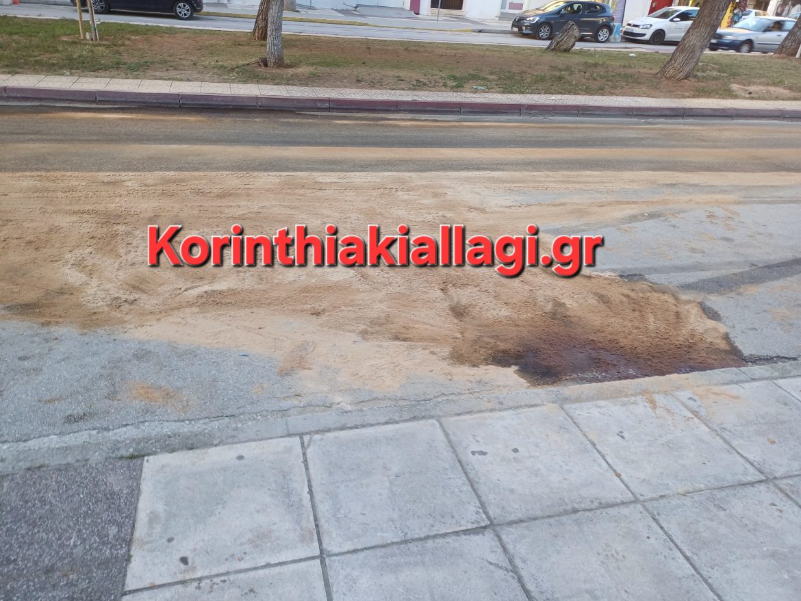 Δεξαμενή πετρελαίου οικοδομής στην Κόρινθο παρουσίασε σημερα Κυριακή 4/5/2025 διαρροή με αποτέλεσμα πολλά λίτρα καυσίμου να χυθούν στον δρόμο επί της οδού Γ.Παπσνδρεου Βρίσκονται σε εξέλιξη εργασίες καθαρισμού με πίτουρα και ένα ιδικό υλικό ενώ οι δρόμοι στην περιοχή είναι ανοιχτοί.