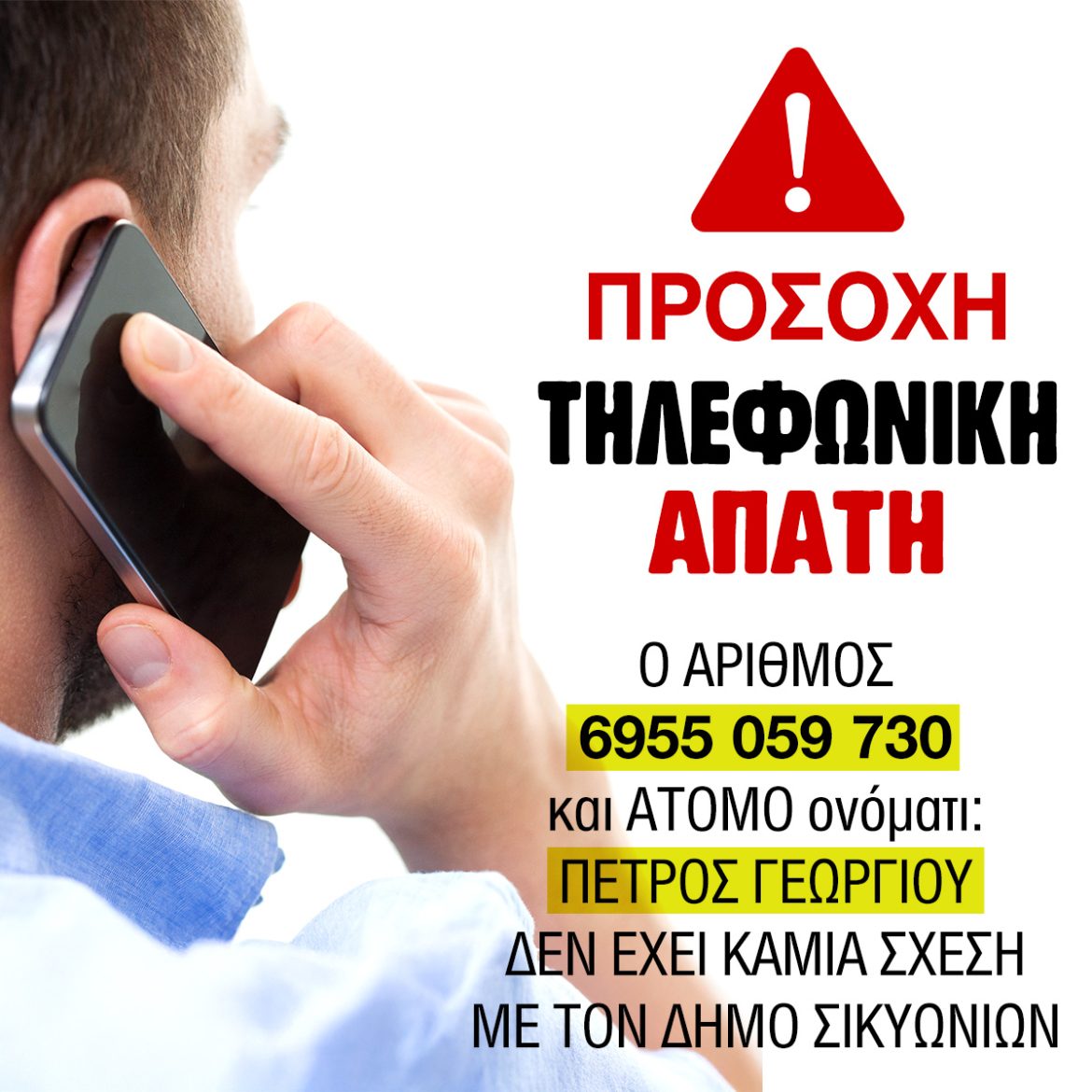 Ο Δήμος Σικυωνίων ενημερώνει τους δημότες ότι τις τελευταίες ώρες έχουν καταγγελθεί επανειλημμένα κρούσματα ΤΗΛΕΦΩΝΙΚΗΣ ΑΠΑΤΗΣ από άγνωστο άτομο, που λέει ότι ονομάζεται “#Πέτρος_Γεωργίου”, και συστήνεται #ψευδώς ως εκπρόσωπος του Δήμου.