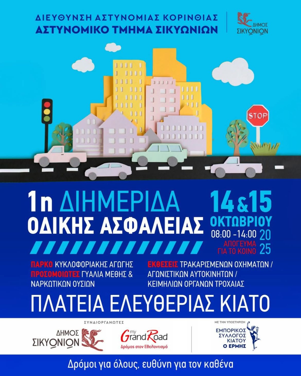 ξεκινά η 1η Διημερίδα #ΟδικήςΑσφάλειας στο Κιάτο! Μια πρωτοβουλία του #ΑστυνομικούΤμήματος_Σικυωνίων και του Δήμου Σικυωνίων, με τη στήριξη της Διεύθυνσης Αστυνομίας Κορινθίας, του Εμπορικού Συλλόγου “Ο Ερμής” και της ομάδας My Grand Road. 🎯 Στόχος: Να κάνουμε την οδική ασφάλεια υπόθεση όλων μας. @@ακόλουθοι Εμπορικός Σύλλογος Κιάτου