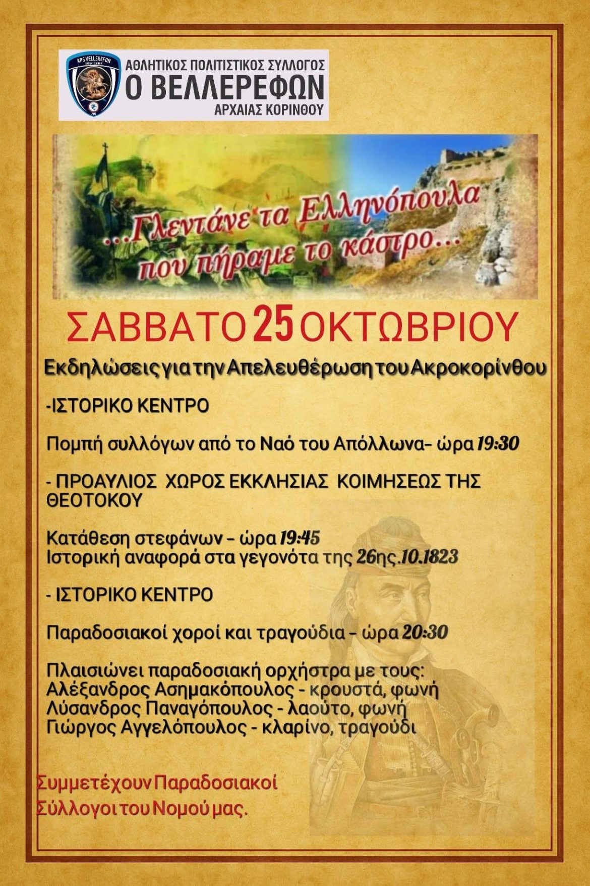 ΚΟΡΙΝΘΙΑΚΑ ΝΕΑ Διήμερο Πολιτιστικών Εκδηλώσεων 25 & 26 Οκτωβρίου στην Αρχαία Κόρινθο by Κ. Α. 21 Οκτωβρίου, 2025 written by Κ. Α. 21 Οκτωβρίου, 2025 353 0 FacebookTwitterPinterestEmail Κ. Α. previous post Ο Δήμος Κορινθίων ξαναδίνει λάμψη στο Δικαστικό Μέγαρο με 2,6 εκατ. ευρώ next post Ανακοινωση για την κυκλοφορία και τη στάθμευση οχημάτων στην Αρχαία Κόρινθο