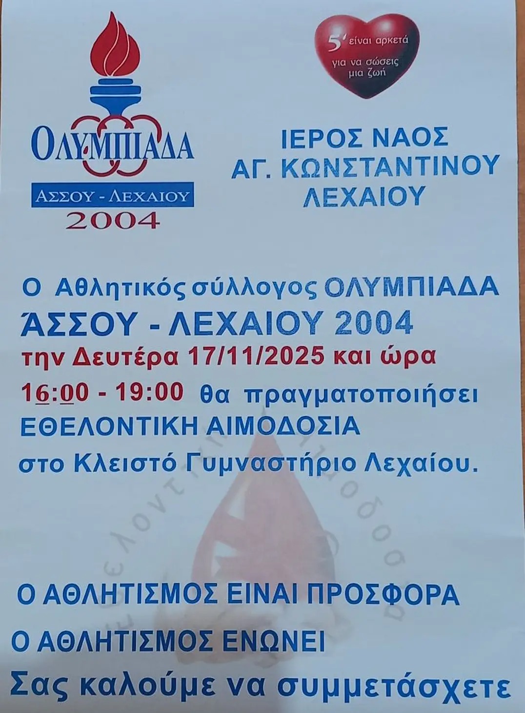ΚΟΡΙΝΘΙΑΚΑ ΝΕΑ Εθελοντική αιμοδοσία από τον Σύλλογο “ΟΛΥΜΠΙΑΔΑ ΑΣΣΟΥ ΛΕΧΑΙΟΥ 2004” by Κ. Α. 7 Νοεμβρίου, 2025 written by Κ. Α. 7 Νοεμβρίου, 2025 150 0 FacebookTwitterPinterestEmail Κ. Α. previous post Σύλληψη 38χρονης αλλοδαπής για πλαστογραφία και παραβάσεις που αφορούν τα εμπορικά σήματα next post Στοχευμένες αστυνομικές επιχειρήσεις πραγματοποιήθηκαν στην Αργολίδα και στην Κορινθία