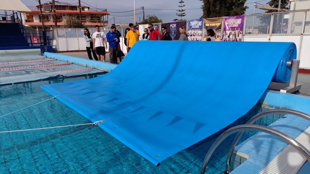 1.     τοποθετήθηκε θερμικό κάλυμμα στην πισίνα του Δημοτικού Κολυμβητηρίου. Η παρέμβαση αυτή εξασφαλίζει σταθερή θερμοκρασία στο νερό και περιορίζει τις θερμικές απώλειες, ενισχύοντας την αποτελεσματικότητα της εγκατάστασης και μειώνοντας το ενεργειακό κόστος.