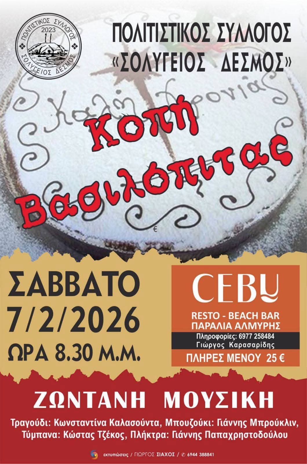 ΚΟΡΙΝΘΙΑΚΑ ΝΕΑ Κοπή Πρωτοχρονιάτικης Πίτας απο τον Πολιτιστικό Σύλλογο “ΣΟΛΥΓΕΙΟΣ ΔΕΣΜΟΣ” by Κ. Α. 13 Ιανουαρίου, 2026 written by Κ. Α. 13 Ιανουαρίου, 2026 339 0 FacebookTwitterPinterestEmail Κ. Α. previous post Συνελήφθη ημεδαπός για εισαγωγή, μέσω ταχυδρομικού δέματος, ροζ κοκαΐνης, καθώς και για κατοχή ηρεμιστικών και αναβολικών δισκίων next post Ανακοίνωση του Γραφείου Τύπου του ΣΥΡΙΖΑ Προοδευτική Συμμαχία. Ποιος δίνει το θάρρος και τις πλάτες στον κ. Λέγγα να λέει ότι «αν δεν είσαι στο τραπέζι, είσαι στο μενού»;