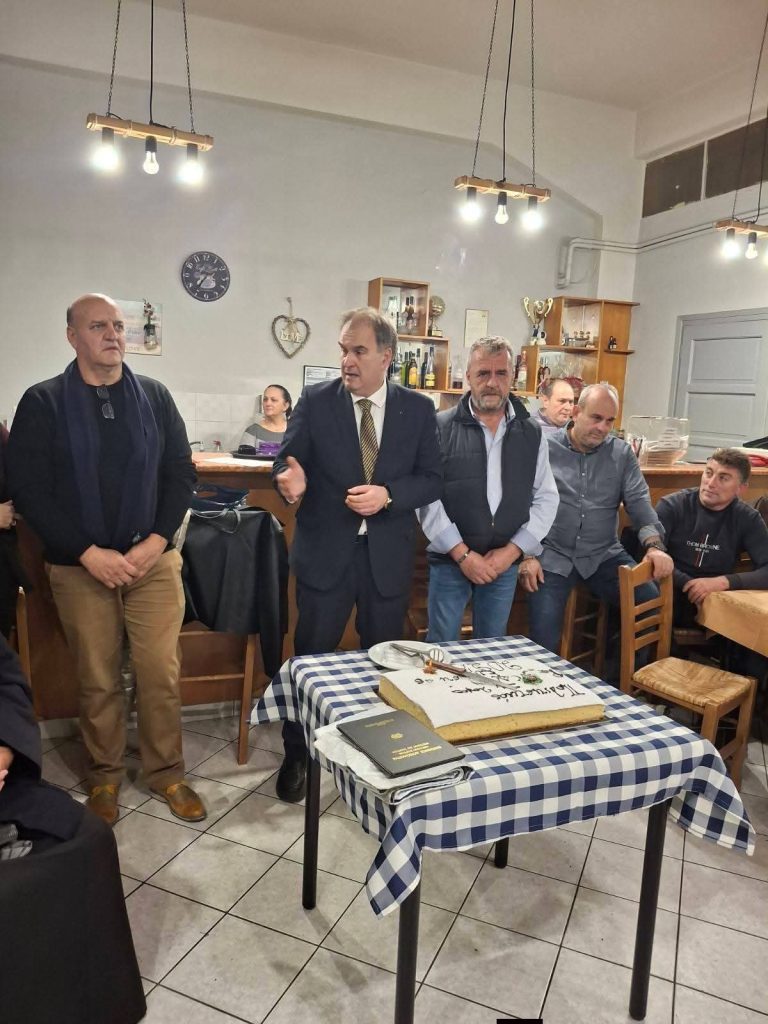 Το λόγο πήρε ο πρόεδρος του συλλόγου Βασίλης Χασάπης Ευχαριστουμε θερμά όλους τους φίλους και τα μέλη του Συλλόγου που παρευρέθηκαν σήμερα στο καφε ‘νταλας’και τίμησαν με την παρουσία τους κοπή πρωτοχρονιάτικης πίτας αλλά και την πολύτιμη βοήθεια και στήριξη τους. Η μεγάλη συμμετοχή μας δίνουν δύναμη να συνεχίσουμε με όρεξη και αισιοδοξία.