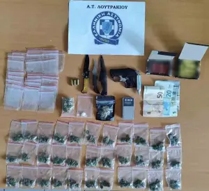 Από αστυνομικούς του Αστυνομικού Τμήματος Λουτρακίου συνελήφθη ανήλικος για παράβαση των νομοθεσιών για ναρκωτικά, τα όπλα και περί φωτοβολίδων και πυροτεχνημάτων