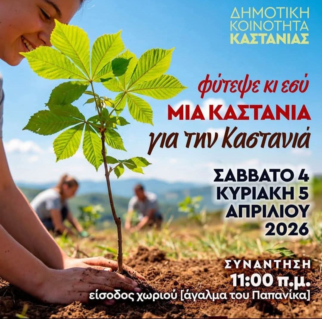 ΚΟΡΙΝΘΙΑΚΑ ΝΕΑ Δεδροφυτευση στην Καστανιά Κορινθίας by Κ. Α. 31 Μαρτίου, 2026 written by Κ. Α. 31 Μαρτίου, 2026 181 0 FacebookTwitterPinterestEmail Κ. Α. previous post «Επί σκοπό πλουτισμού»: Το «Μπλε αλώνι» φέρνει την Ελισάβετ Χρονοπούλου στις «Σικυώνιες Εαρινές Διαδρομές» next post Κακοκαιρία «Erminio» |Σε «Red Code» η Πελοπόννησος