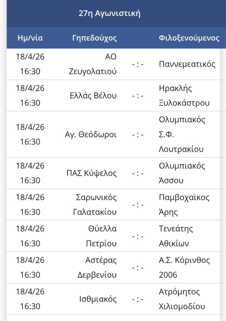ΑΘΛΗΤΙΚΑ Δειτε τους σημερινούς αγώνες της Α’ Κατηγορίας Κορινθίας στο ποδόσφαιρο by Κ. Α. 18 Απριλίου, 2026 written by Κ. Α. 18 Απριλίου, 2026 53 0 FacebookTwitterPinterestEmail Κ. Α. previous post Εκπαίδευση πρώτων βοηθειών στα Λουτρά Ωραίας Ελένης την Κυριακή 26 Απριλίου. Διοργανώνει ο Πολιτιστικός Σύλλογος “ΣΟΛΥΓΕΙΟΣ ΔΕΣΜΟΣ “