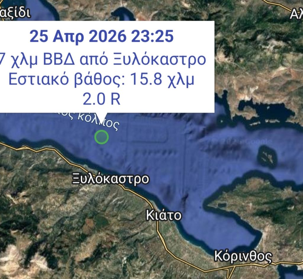 ΚΟΡΙΝΘΙΑΚΑ ΝΕΑ Σεισμική δόνηση μεγέθους 2.0 Ρίχτερ στον Κορινθιακό by Κ. Α. 25 Απριλίου, 2026 written by Κ. Α. 25 Απριλίου, 2026 105 0 FacebookTwitterPinterestEmail Κ. Α. previous post Δειτε τα αποτελέσματα και την βαθμολογία στην Α’ κατηγορία Κορινθίας στο ποδόσφαιρο