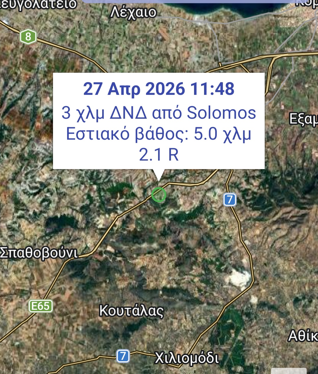 ΚΟΡΙΝΘΙΑΚΑ ΝΕΑ Ασθενής σεισμική δόνηση μεγέθους 2,1 Ρίχτερ κοντά στον Σολομό Κορινθίας by Κ. Α. 27 Απριλίου, 2026 written by Κ. Α. 27 Απριλίου, 2026 134 0 FacebookTwitterPinterestEmail Κ. Α. previous post Από τις «Σικυώνιες Διαδρομές» στην καρδιά της Γερμανίας: Μια υποτροφία-γέφυρα για το μέλλον