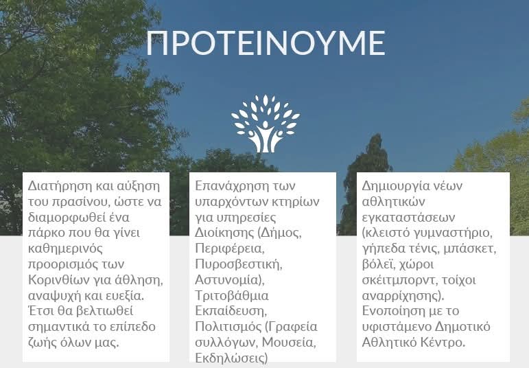 Η παράταξή μας διεκδίκησε τον Δήμο Κορινθίων με μια νέα αυτοδιοικητική πρόταση, η οποία μέσα σε μόλις έξι μήνες παρουσίας κατάφερε να συγκεντρώσει ποσοστό περίπου 10%. Από την πρώτη στιγμή θέσαμε στο δημόσιο διάλογο ένα από τα σημαντικότερα ζητήματα για την πόλη: τη διεκδίκηση του στρατοπέδου Καλογερογιάννη.