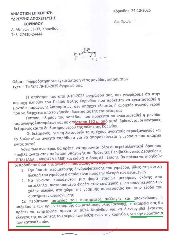 Σύμφωνα με τα νέα στοιχεία που αναδείξαμε στο Δημοτικό Συμβούλιο, ο διευθυντής της ΔΕΥΑΚ απαντά εγγράφως προς την εταιρεία των λιπασμάτων.