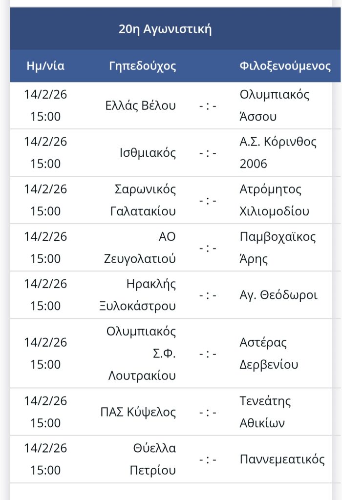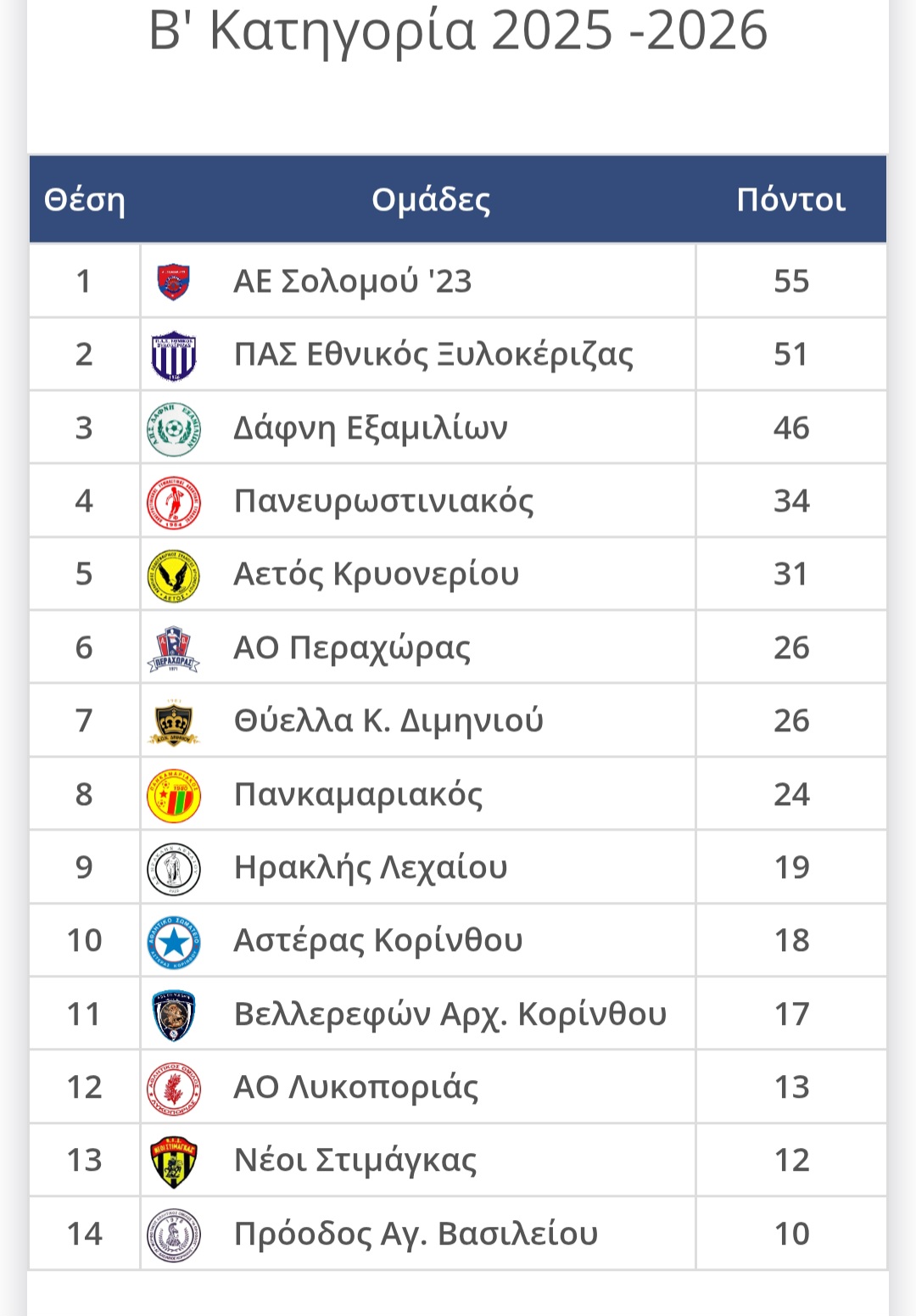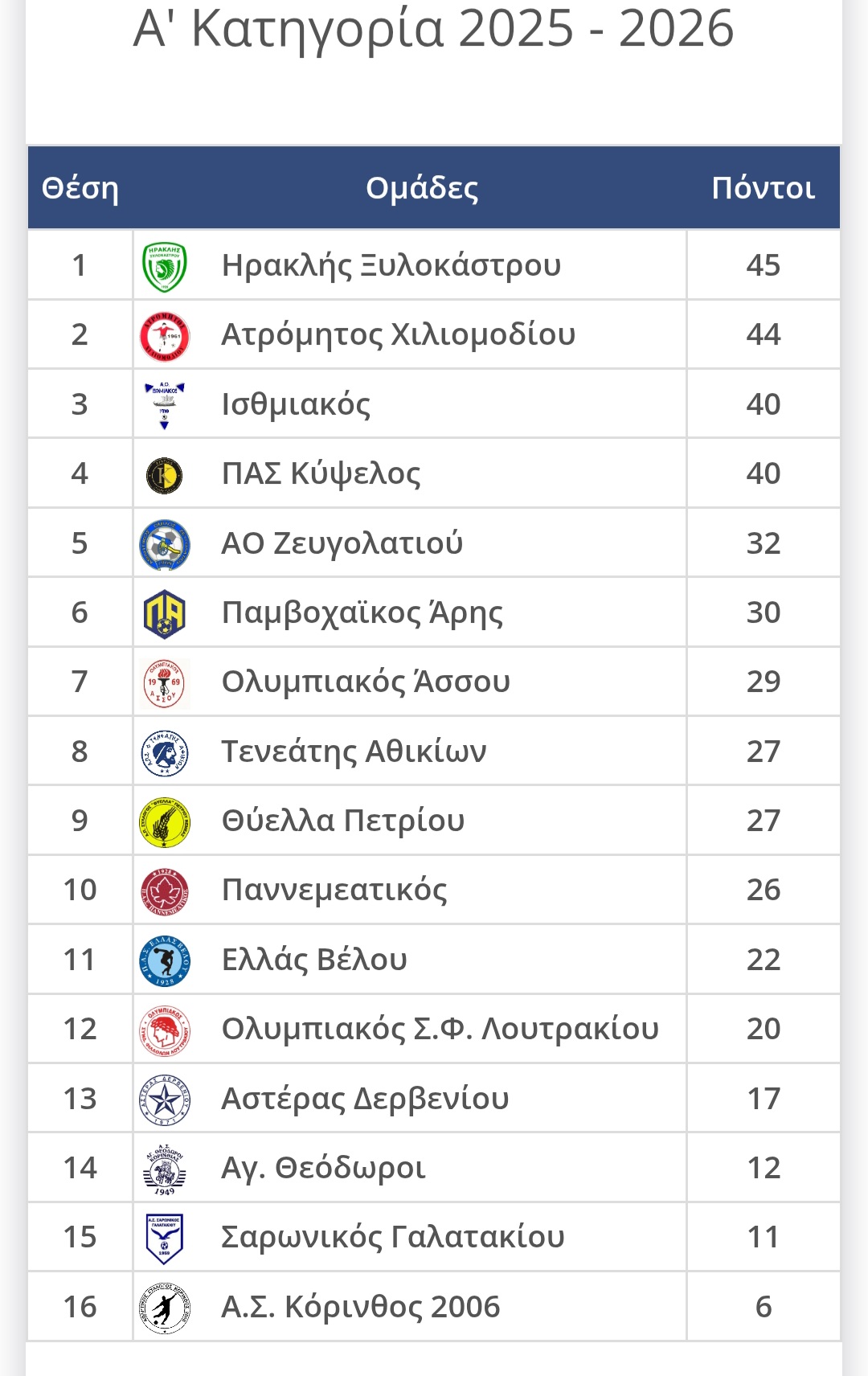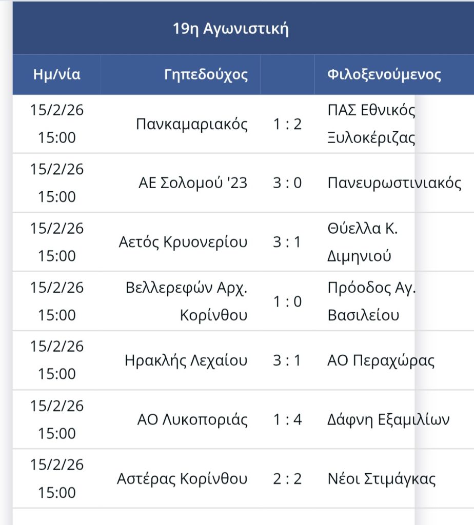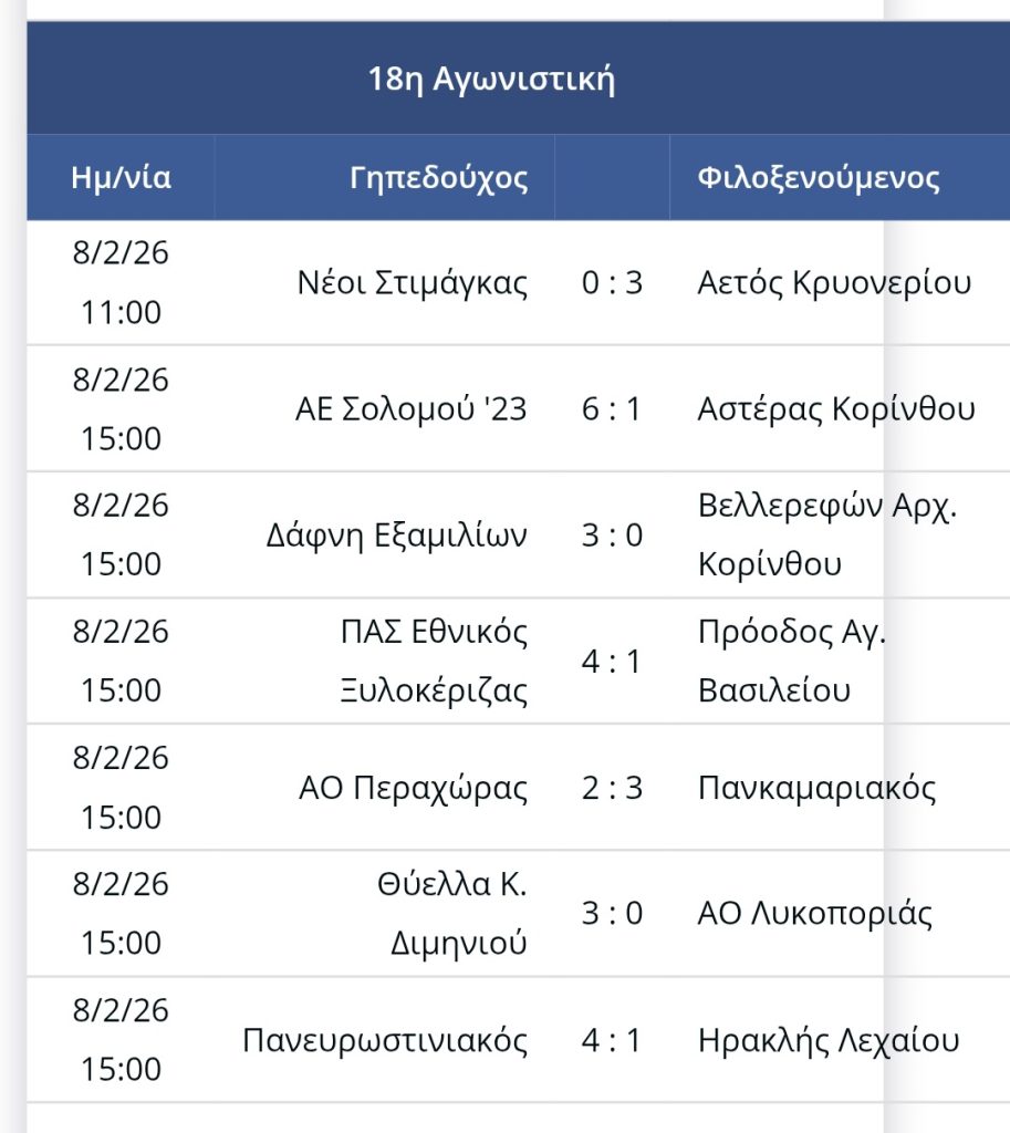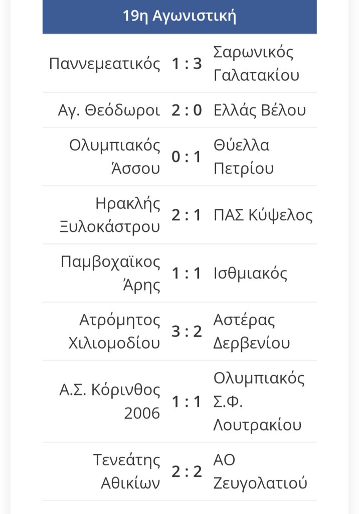 Α.Ο. ΙΣΘΜΙΑΚΟΣ – ΑΤΡΟΜΗΤΟΣ ΧΙΛΙΟΜΟΔΙΟΥ – ΣΑΡΩΝΙΚΟΣ ΓΑΛΑΤΑΚΙΟΥ – ΗΡΑΚΛΗΣ ΞΥΛΟΚΑΣΤΡΟΥ – ΑΕ ΣΟΛΟΜΟΥ ’23 – ΑΟ ΛΟΥΤΡΑΚΙ – ΠΕΛΟΠΑΣ ΚΙΑΤΟΥ – ΠΑΣ ΚΟΡΙΝΘΟΣ